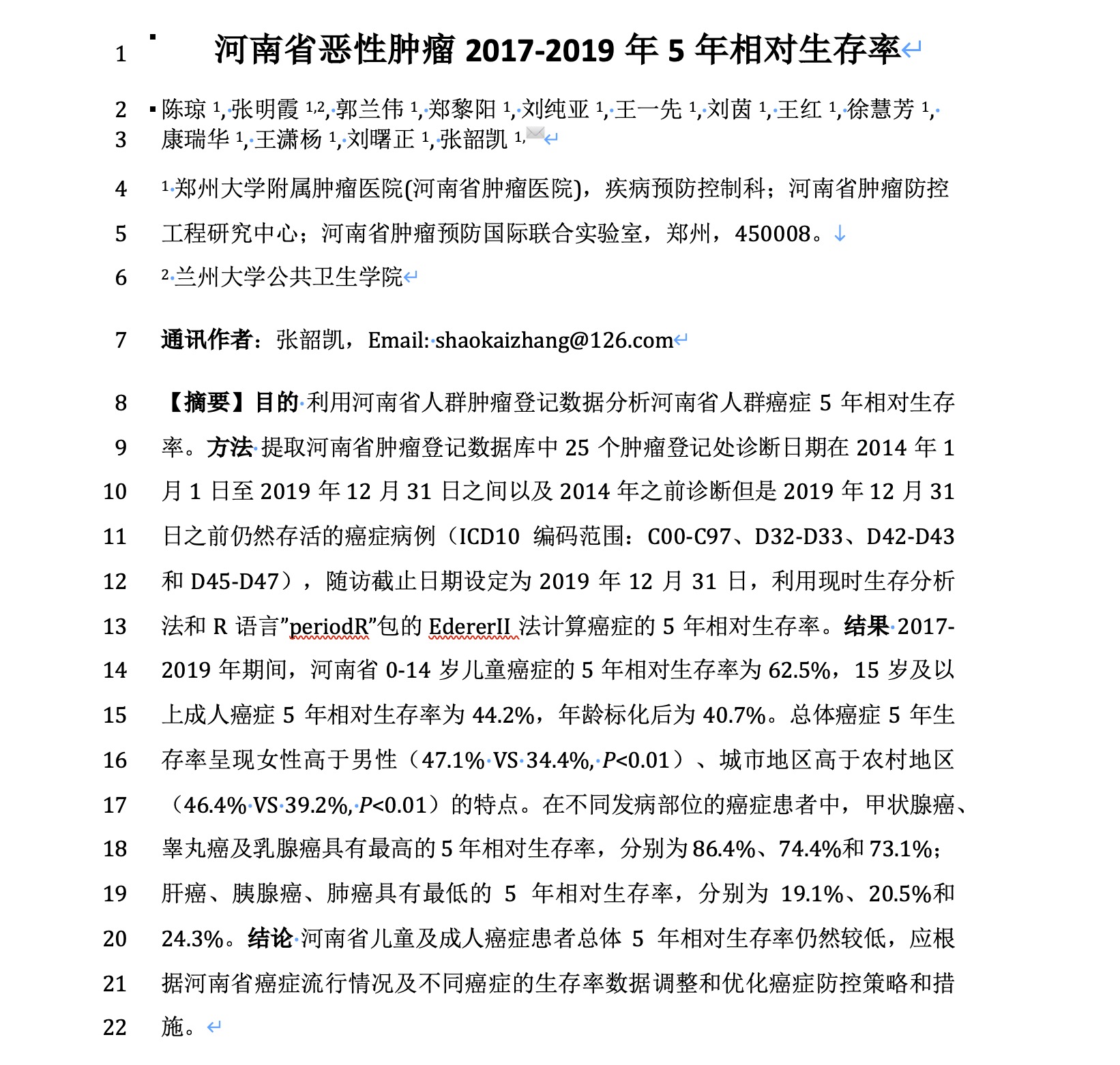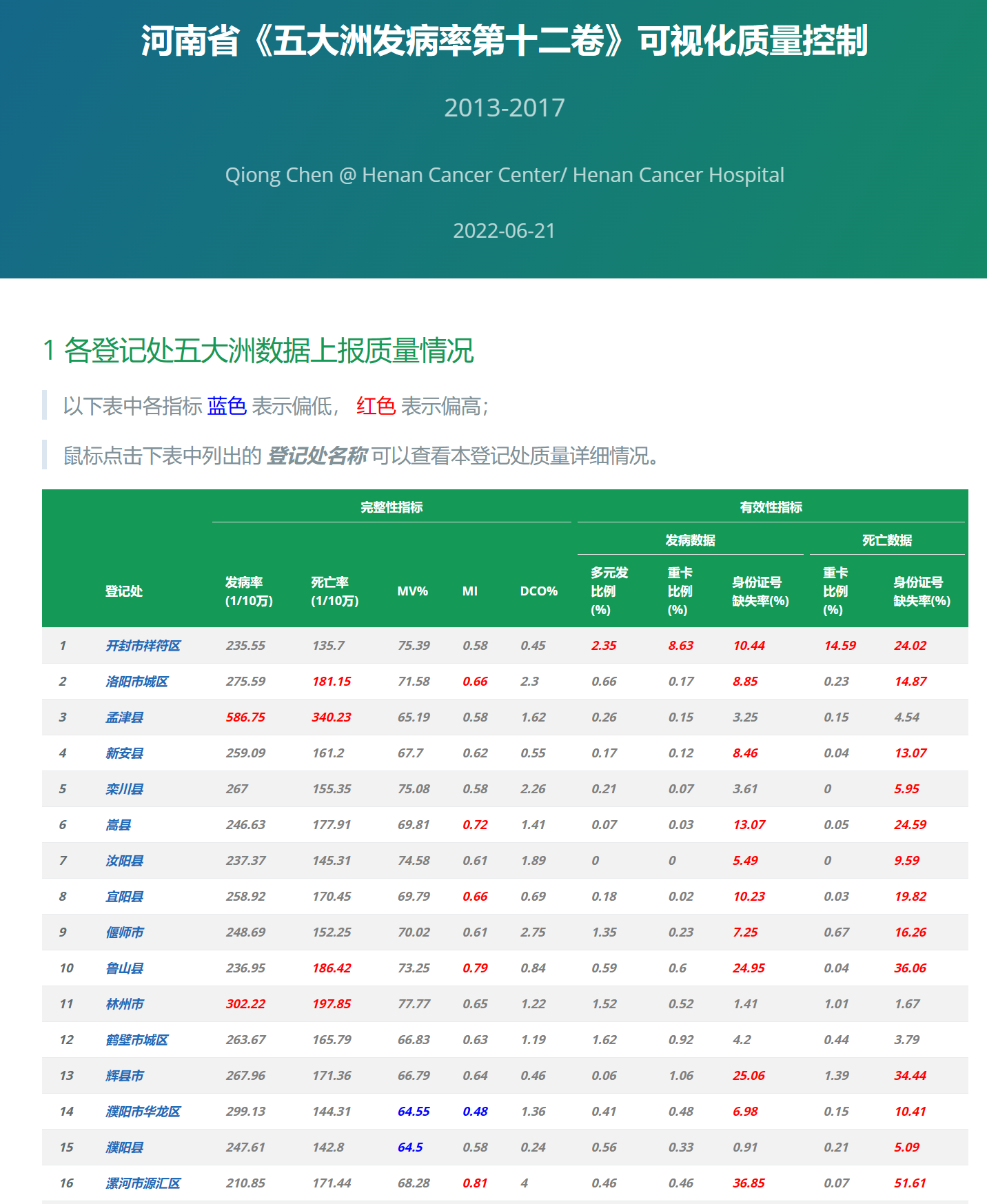 河南省人群肿瘤登记